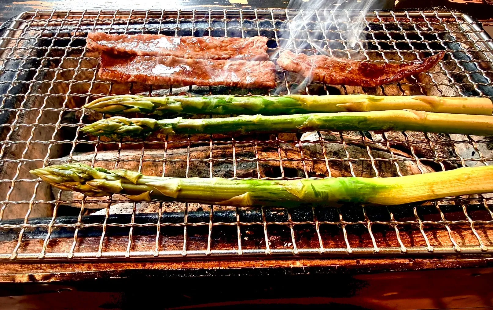 【期間限定】白老牛×伊達産アスパラガス。北海道の大地が育んだ「究極の共鳴」を炭火焼きで味わう